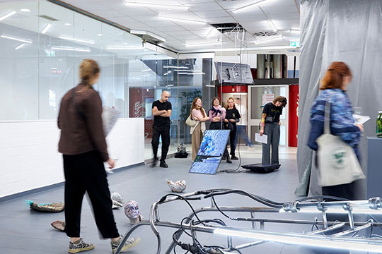 Zentral ist eine Installation von Jill Kiddon, die wie ein „UFO“ Wrack anmutet, dass durch die Decke gestürzt ist! Dazu werden Skulpturen von Alexander Skorobogatov und eine Video Installation von Flavio Degen zusehen sein. Außerhalb des Lusvardi Art Satellite Space wird auf eine große Wandfläche im CAP Kiel eine Abfolge von Lichtzeichnungen von Natalia Korotyaeva projiziert werden.